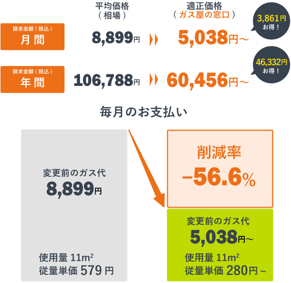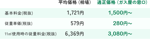 | 10㎥使用時 | 7,120 円 | 3,800 円 | 3,320 円 |